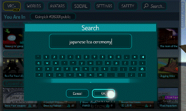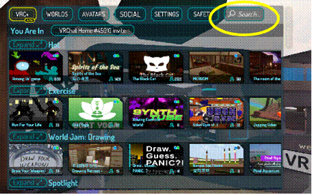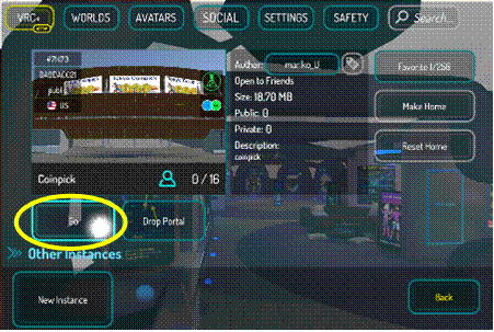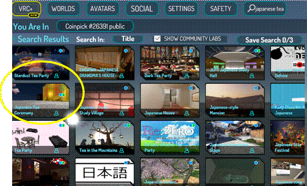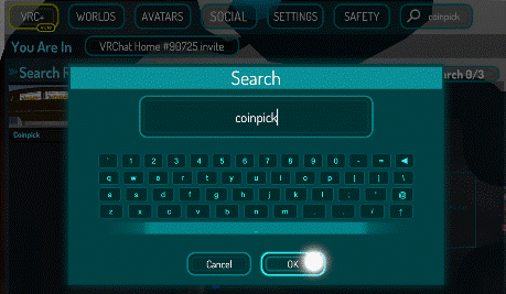 3) This is a list of Worlds on VRchat. To get to “Coinpick Stadium,” use “Search..”.