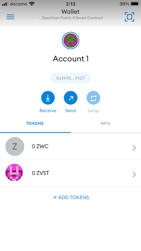 The ZVST token is a token that can be traded on Zweichain. Therefore, you need to set up an additional Network called “Zweichain Public 4 Smart Contract”.