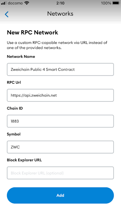 (If you have a PC with a Metamask and want to set up Zweichain, the procedure is almost the same.)