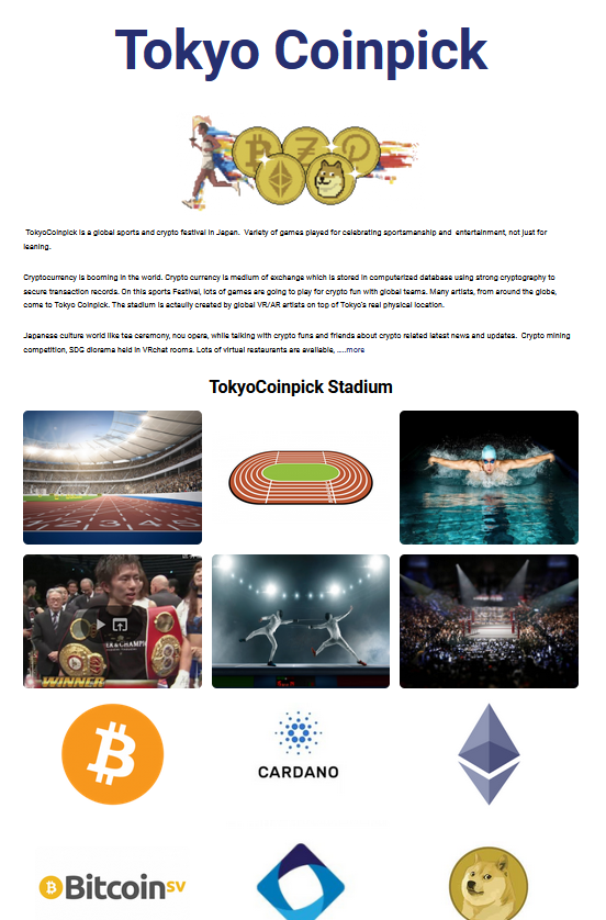 Tokyo Coinpick is a virtual festival where you can compete in virtual sports and games, experience Japanese culture such as Japanese cuisine, tea ceremony and Noh-opera, exchange the latest information on crypto assets, and much more.