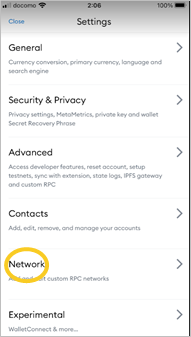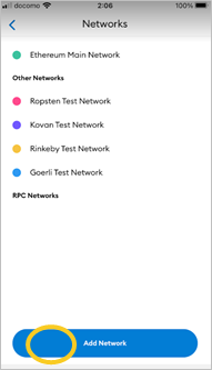 If you want to switch to another network, such as Ethereum, tap the top to select another Chain.