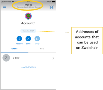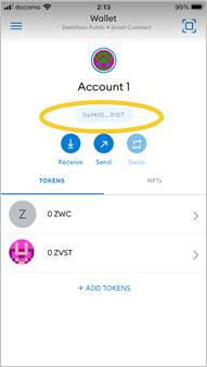 2-6. Confirm that the wallet is now in the Zweichain network.
